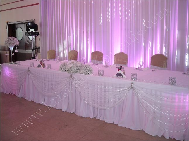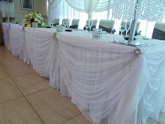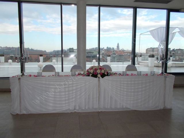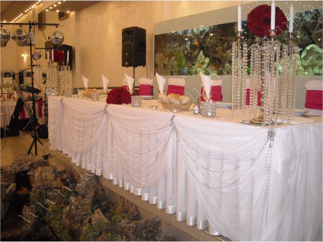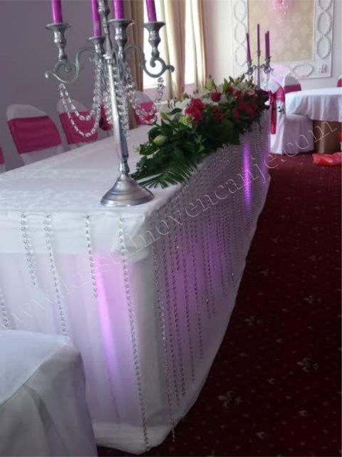 Kristalni mladenacki sto - ceo sto je ukrasen vrlo ekskluzivno sa preko 50 m kristala koji blago padaju sve do poda